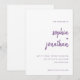 Modern Minimalist Script White and Purple Wedding Invitation