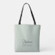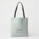 This simple, elegant signature design features her first name in stylish charcoal grey handwriting script and your last name in minimalist sans serif font on a sage green background.