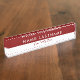 Customise this Modern Clean Minimalist White Desk Nameplate with white name and last name letters on a burgundy red stripe on the upper half and on a white bottom half under with a place for your title. The red colour is customisable and can be changed to match your business colour.