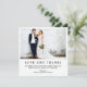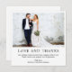 Modern Minimalist Simple Love and Thanks Wedding Bride and Groom Photo Thank You Square Card
