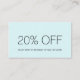 Light pastel blue, trendy, minimalist, modern, simple, professional discount card. Write your own text and per cent.