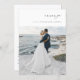 Elevate your post-wedding gratitude with our Modern Minimalist Simple Script Wedding Photo Thank You Card. This elegant design blends the timeless beauty of wedding with chic, modern typography, creating a keepsake your guests will treasure. Featuring a stunning photo backdrop of ocean waves, this card captures the serenity and romance of a beachside celebration. The minimalist design, accented with formal black and white tones, reflects a sophisticated coastal aesthetic, perfect for a trendy yet classic thank you gesture. Ideal for destination weddings, this card serves as both a memento of your special day and a heartfelt thank you.