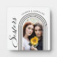 A special gift for your sister, whether a family member or a sorority sister, this modern stylish plaque design has a contemporary geometric arch frame template to personalise with your selected photo. Celebrate your relationship of sisterhood and special times together with this custom gift that symbolises your special bond and devotion to each other. Shown here with black text on a white background.