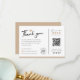 This warm and personal thank you card is designed to express your gratitude to customers in a unique and engaging way. The card features a handwritten "Thank You" with a touch of heart, along with a QR code that links to your online shop for easy access to future purchases. It also includes a discount code, contact information, social media links, and a call to action to leave a review. The soft, earthy colour palette creates a warm and inviting aesthetic, making it a perfect fit for any small business looking to connect with their customers on a personal level.