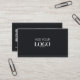 This standard sized black business card is designed for those seeking a modern, stylish, and professional look. With a herringbone pattern along the top and bottom borders, it strikes the perfect balance between elegance and boldness. The front showcases a large logo, ensuring high visibility for corporate professionals, CEOs, or entrepreneurs. The back features a QR code for instant access to your digital contact details, alongside your name, job title, social media handles, and contact information, making it perfect for social media managers, coordinators, or business owners.