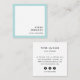 Simple and professional square business cards feature your name and title or occupation in the lower right corner, framed by a chic pastel aqua border. Add your contact information to the reverse side. Includes three social media icons and a field for your username.