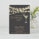Minimalist gold string lights cocktail Christmas party invitation design.