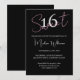Modern Minimalist Sweet 16 Black Pink Birthday Invitation