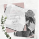 Theme Parties' modern Save the Date design features an angled photo cutout and your engagement photo as the back drop to your engagement announcement -- giving your Save the Date a modern geometric look. The accent colour for this minimalist Save the Date is taupe ( #CEB1AE). Your engagement photo is automatically converted to black and white and repeated on the reverse side. The design is accented with hand-lettered typography paired with modern block text. #SaveTheDate #ModernWedding #PhotoSaveTheDate #TaupeWedding #SpringWedding