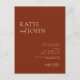 Invite your friends and loved ones to your modern boho wedding with this rustic vibe invitation with calligraphy lettering and brown terracotta background. Personalise the wedding details.
