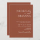 Modern Minimalist Terracotta Wedding Invitation. Monogram at the back.