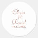 Each sticker is printed on high-quality material, ensuring durability and a polished finish. Whether used to seal envelopes, decorate favour boxes, or add a personal touch to your wedding stationery, our Modern Minimalist Terracotta White Wedding Classic Round Sticker is sure to impress your guests and elevate the ambiance of your special day.