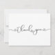 Elegant and simple thank you card featuring hand lettered typography that says 'thank you' with three adjoined hearts either side and in-between. The back of the card has the option to personalise the text, or remove it by leaving the boxes blank, if you prefer a handwritten message.