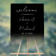 Modern minimalist wedding welcome sign featuring simple script calligraphy typography and transparent gradient.