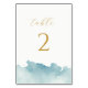 Double sided minimalist Beach wedding aqua white and gold Table number featuring simple watercolor water splash