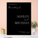 Create your own acrylic wedding sign featuring custom names, date and other wedding details in white modern minimalist typography on black background. A sleek and minimalist way to greet guests on your special day.
