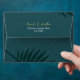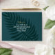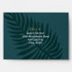Our wedding invitation envelope features modern calligraphy on a blue background with a single palm leaf outline across the design. Add your address and the address of your guests for easy mailing. Please shop our store for coordinating items.