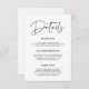 Wedding guest information card: don't forget this useful card with all your important wedding details like location, accommodation, transportation, etc... Modern, simple and clean: adopt this minimalist handwritten design for your wedding stationery. Fully customisable colours.