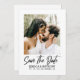 Announce your big day in style with this modern and elegant Save the Date invitation. This simple, minimalist Save the Date card is perfect for introducing your guests to your wedding day, and is sure to be treasured as a keepsake for years to come. Featuring photo of a romantic couple and classic dark typography in a white background you can personalised. The backside features a QR code guests can scan to visit your website to find more details about the big day. This simple but pretty design is perfect to show off your sense of style and to let your friends and family know that you are getting married.