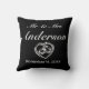 Wedding present pillow. Stylish modern minimal black white design with heart and wedding rings.