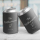 Keep drinks cool in style with this modern minimalist can cooler! Personalise simply with your last name and date of nuptials for a cool custom wedding favours. This is the charcoal and bright ivory version. Colours are easily changeable in the design tool at the bottom of the personalisation tab. If changing font colour, please do so on both sides - will print exactly as in preview.