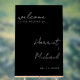 Modern minimalist wedding welcome sign featuring simple script calligraphy typography.