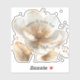 A gorgeous minimalist white and gold color wedding sticker with the name of the bride and groom, and wedding date.