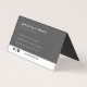plain black chic, elegant and simple folded business card in modern grey and white style with rounded corners features your logo, general name, speciality and job description in front and full name, career, details and social media with icons in back, perfect for any profession consultants, accountants, lawyers, attorney, interior designs.
