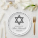 Bat Mitzvah (or Bar Mitzvah) paper plates. Stylish modern minimal white and black design.