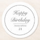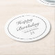 Happy Birthday paper coaster. Stylish modern minimal white and black design.