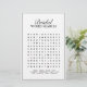 Bridal and Wedding word search game. Stylish modern minimal white and black design.