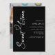 Celebrate your Sweet 16 in style with this modern minimalist invitation. The front features customisable details in elegant white script typography, highlighted against a bold black background, with the 'Sweet 6teen' text accented by a charming heart. The back provides space for a full-size photo, allowing you to add a personal touch. This chic and sophisticated design is perfect for creating a memorable Sweet 16 celebration.