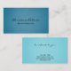 Easily edit the text to create your own professional business card to share your business contacts. Add your name and profession to the front and your tagline or custom text and contact information to the back. This simple elegant design has a textured look and clean clear modern script. The teal aqua combination is soothing and beautiful. On the back are the opposite colours, a fresh light textured aqua, sea foam green blue with black script. See the other colours and products in this collection. This would suit well for a cosmetologist, hairstylist, beauty therapist, aesthetician, salon artist, home stager, artist, therapist, life coach.