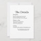 Against a backdrop of pristine white, this details card exudes an aura of purity and elegance, providing the perfect canvas for showcasing the finer details of your special day. The use of black script typography adds a touch of timeless sophistication, ensuring that the important information is presented with clarity and grace.