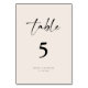 Modern Minimalistic Script Beige Wedding Table Number. Personalise with your table numbers, bride and groom names, and your wedding date.