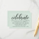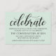 Modern and chic mint blue green wedding "Celebrate" card features a stylish black typographic design with bold calligraphy script accents and elegant custom text that can be personalised with your wedding reception information.