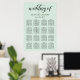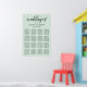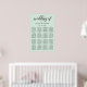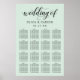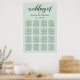 Modern and chic mint blue green wedding seating chart poster features a stylish black typographic design with bold calligraphy script accents and elegant custom text that can be personalised with a monogram of the bride and groom names, names of guests organised by their assigned table numbers.