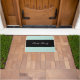 Modern doormat with mint polka dots and customisable text.