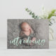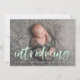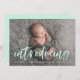 Modern Mint Brush Script Introducing Photo Birth Announcement