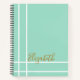 This custom name spiral notebook has a mint green cover and a customisable name in gold to personalise. Available in multiple sizes, the interior pages can be customised with your choice of page design for journalling or note taking.