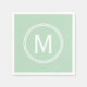 Modern Mint Green Custom Round Framed Monogram Napkin