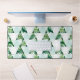 Modern desk mat design featuring mint green and tropical leaves triangles pattern.