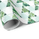 Modern wrapping paper design featuring mint green and tropical leaves triangles pattern.