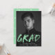 Invite guests to celebrate the grad with our Modern Paint Splatter photo graduation party invites. The design features the graduate's vertical photo with "Grad" in mint green lettering with white paint splatters. Personalise the front of the creative graduation party invitations by adding the graduate's name, school name, and graduation year. The back of the invite features your graduation party details with a background of mint green and white paint splatters. The photo graduation party invitation is perfect to use for both high school and college graduation parties.