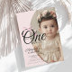 Modern Miss Onederful Pink Bow 1st Birthday Photo Invitation