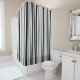 Add a stylish accent to your bathroom with a custom shower curtain featuring various shades of grey, black, and white lines in varying widths which form a sophisticated modern stripe pattern.