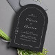This exquisite invitation features a clean, minimalist design with a striking arch photo placeholder, perfect for showcasing your love story. The front is adorned in an arch shaped template with elegant typography, featuring the couple's names in a graceful floral script, alongside the wedding date and location, all presented in crisp white tones against a backdrop of a modern and unique colour palette. The back features a unique arch photo placeholder, inviting you to insert your favourite couple's photo. This invitation is a testament to contemporary style and timeless romance, making it the perfect way to announce your special day. Customise all the text to create a truly unique and treasured keepsake."