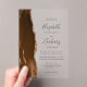 The left-hand edge of this elegant modern wedding invitation features a mocha brown watercolor agate border trimmed with faux gold glitter. The customisable text combines handwriting, copperplate and italic fonts in charcoal grey on a clear background.