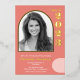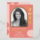 Modern Mod arches graduation party invitations with a photo of the graduate. Features a real gold foil (on the front). Change out the photo with your photo and it will automatically change it to black and white. Pretty colours of coral and blush pink, but you can change the colours if needed and any text!