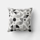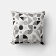 This modern pillow features monochrome seamless geometric pattern with various lines and shapes in black and grey shades on white background.